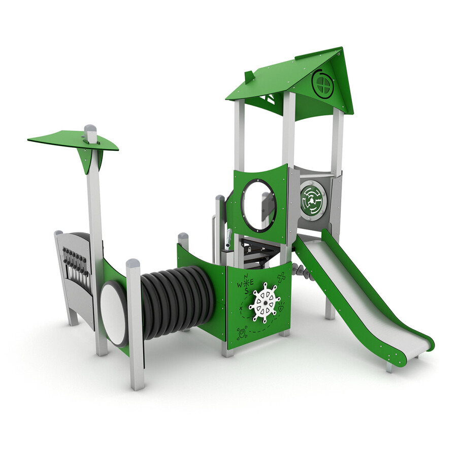 Klimmen, glijden, kruipen, de speelmogelijkheden zijn eindeloos op deze speelcombinatie. Voor de allerkleinste kinderen zijn er diverse speelpanelen in het toestel aanwezig. Niet alleen zitten er heel veel speelwaarden in een speelcombinatie, in verhouding tot losse speeltoestellen neemt een speelcombinatie minder ruimte in beslag. Ideaal voor een kleine speelplek!