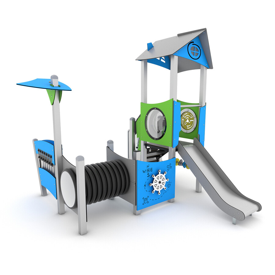 Klimmen, glijden, kruipen, de speelmogelijkheden zijn eindeloos op deze speelcombinatie. Voor de allerkleinste kinderen zijn er diverse speelpanelen in het toestel aanwezig. Niet alleen zitten er heel veel speelwaarden in een speelcombinatie, in verhouding tot losse speeltoestellen neemt een speelcombinatie minder ruimte in beslag. Ideaal voor een kleine speelplek!