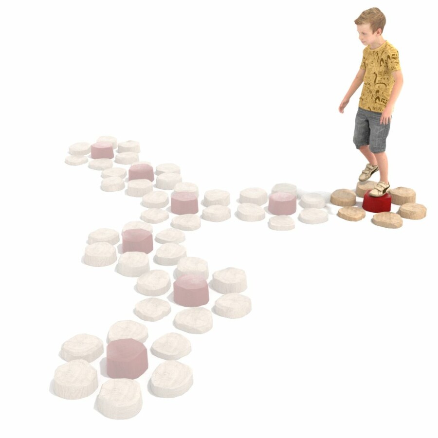 Evenwicht bewaren, dat is altijd een uitdaging. Nu, nieuw bij Replay Speeltoestellen, lage stapstammen die zorgen voor een mooie uitdaging. De vloer is lava. Wie raakt als eerste de grond?