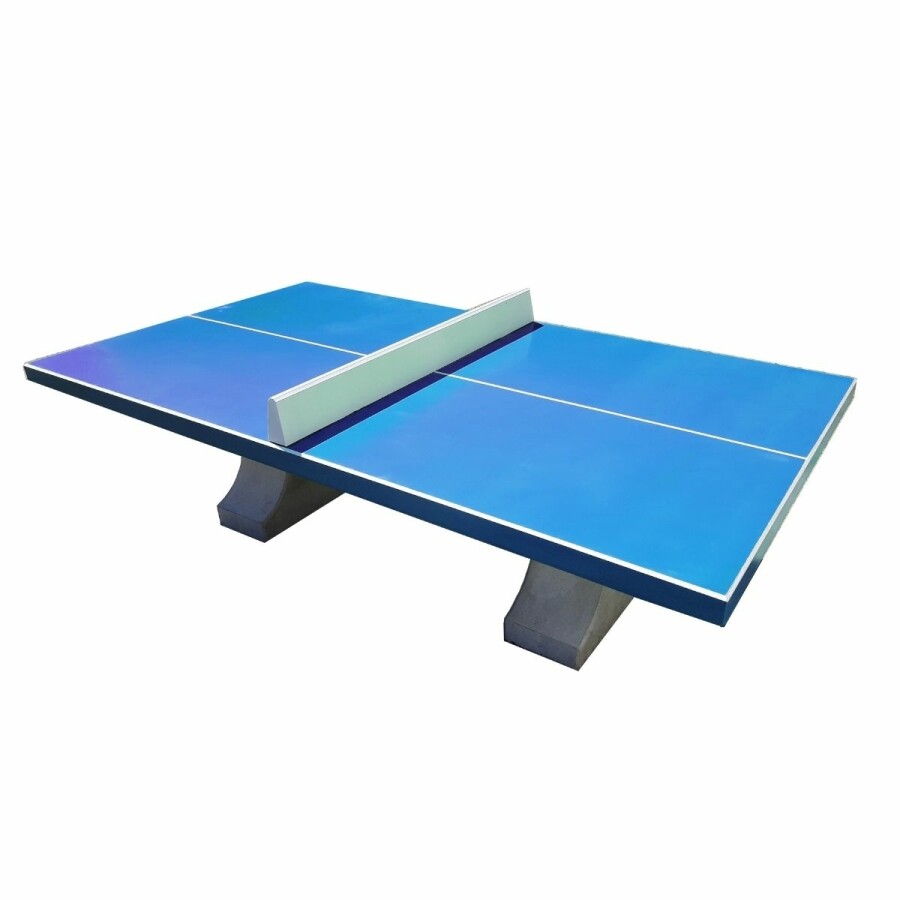 De tafeltennistafel bestaat uit 2 betonpoten en tafelblad van beton.