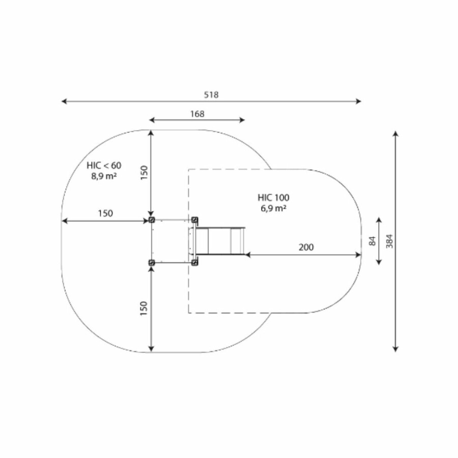 Valhoogte < 0,6 m mits de heuvel gelijk loopt met de kromming van de glijbaan.