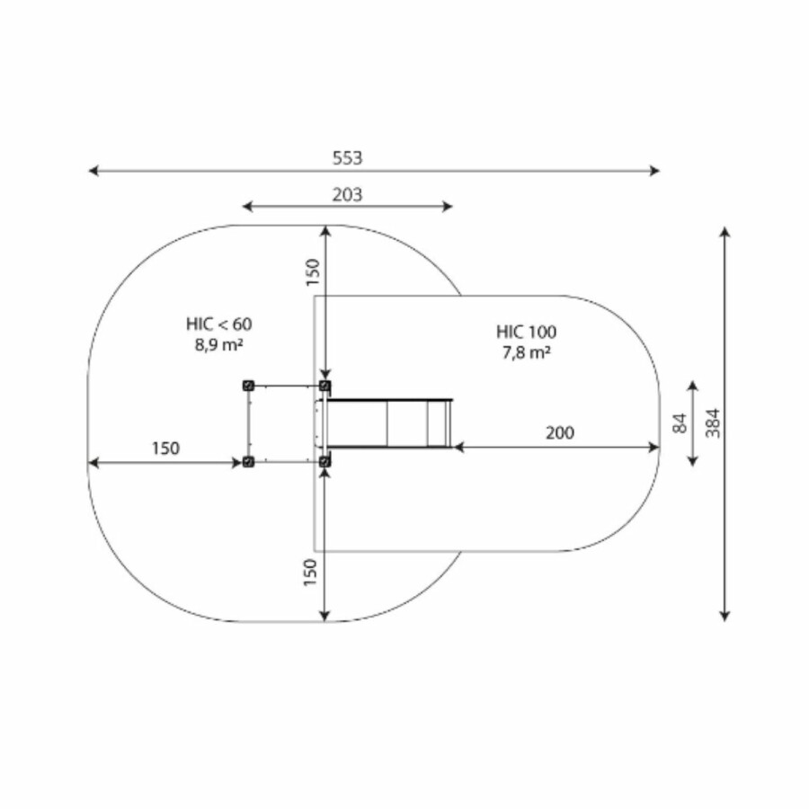 Valhoogte < 0,6 m mits de heuvel gelijk loopt met de kromming van de glijbaan.