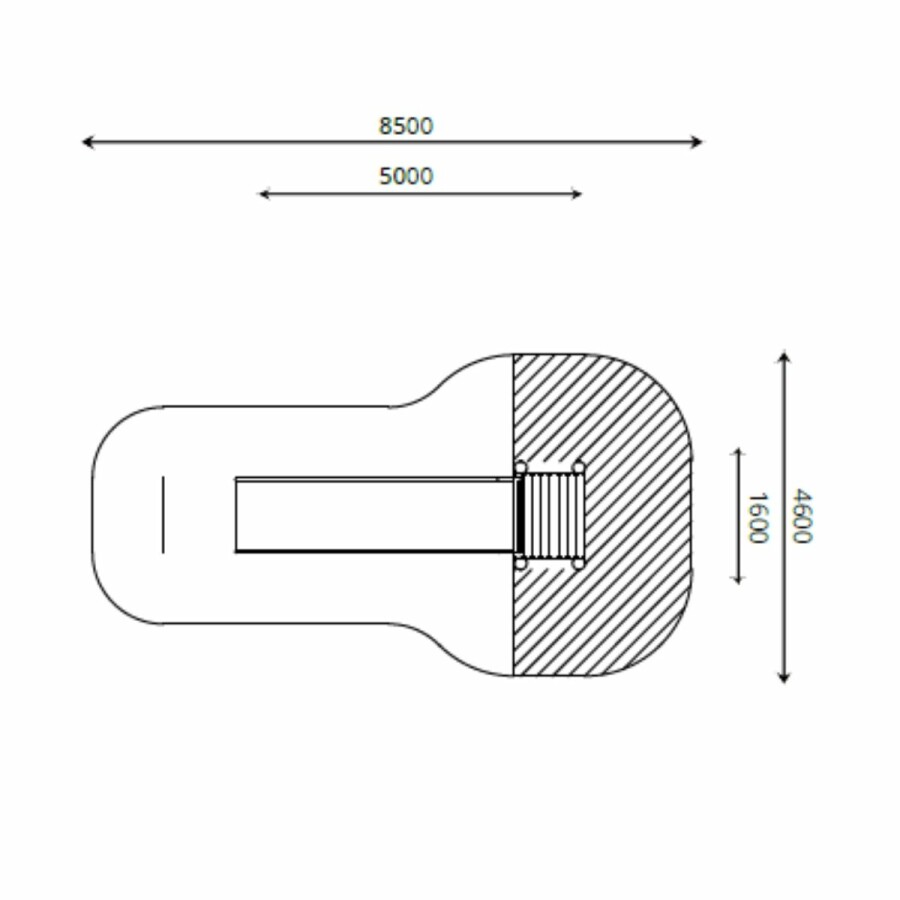 Valhoogte < 0,6 m mits de heuvel gelijk loopt met de kromming van de glijbaan.