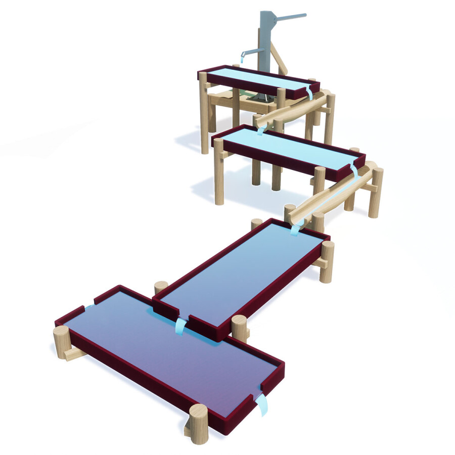 Samenspel wordt bij waterspeeltoestellen extra gestimuleerd, de een pompt het water omhoog, de ander zorgt bijv. voor de dammen.