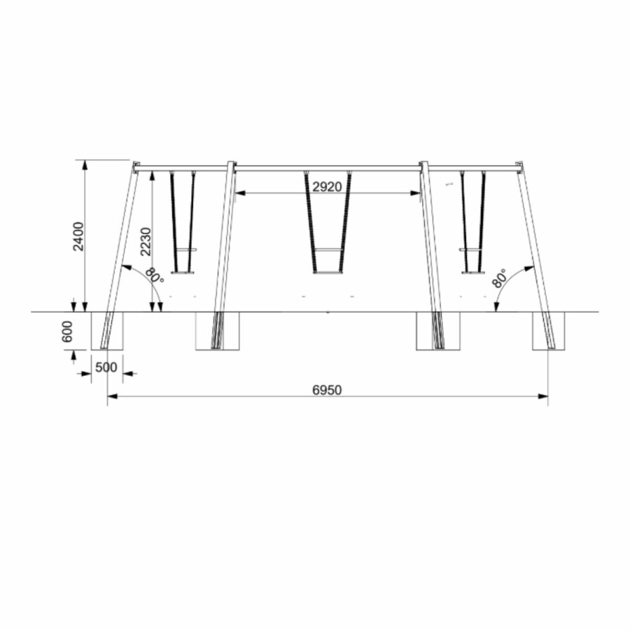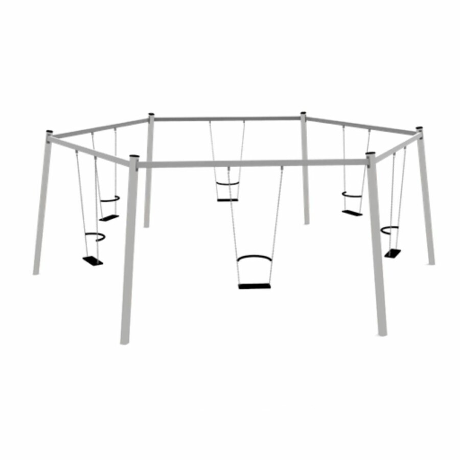 De schommel kan uitgevoerd worden met andere schommelzitjes en andere kleuren bovenbalken.